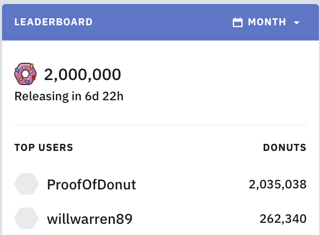Will had a tweetstorm on the whole donut debacle, but here’s the short story — on a popular cryptocurrency subreddit called r/ethtrader, karma (or the internal credit system, think likes, favorites, or upvotes) is represented in credits called donuts. There are two million donuts minted each week, and they’re awarded to users for upvoted content. Donuts are powerful signaling for people in the ethtrader subreddit — the more donuts someone has, the greater their reputation. Donuts can also be used to set the banner image on the subreddit.