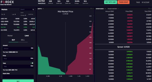 The team over at Zenprivex has been hard at work building a stablecoin focused relayer called ForDex. ForDex will have a range of centralized and decentralized stablecoins in one place, from USDC to DAI to non-USD stablecoins like KRWb, the Korean Won. Additionally, ForDex will have a fiat on ramp for their services made in collaboration with Wyre, as well as key plugins to traditional forex markets.